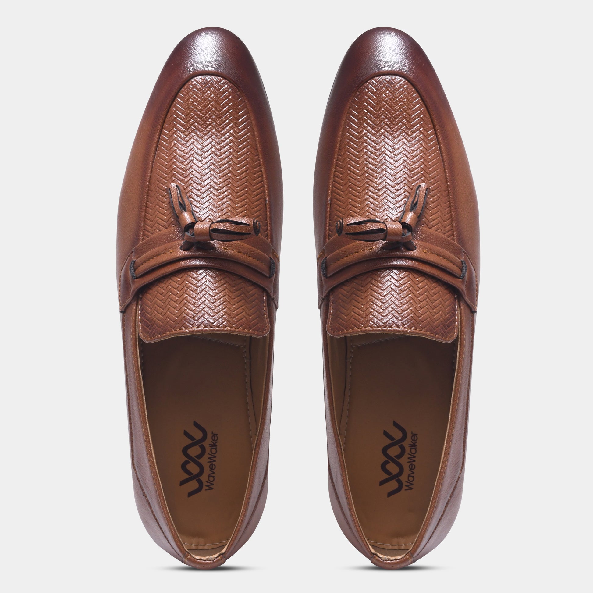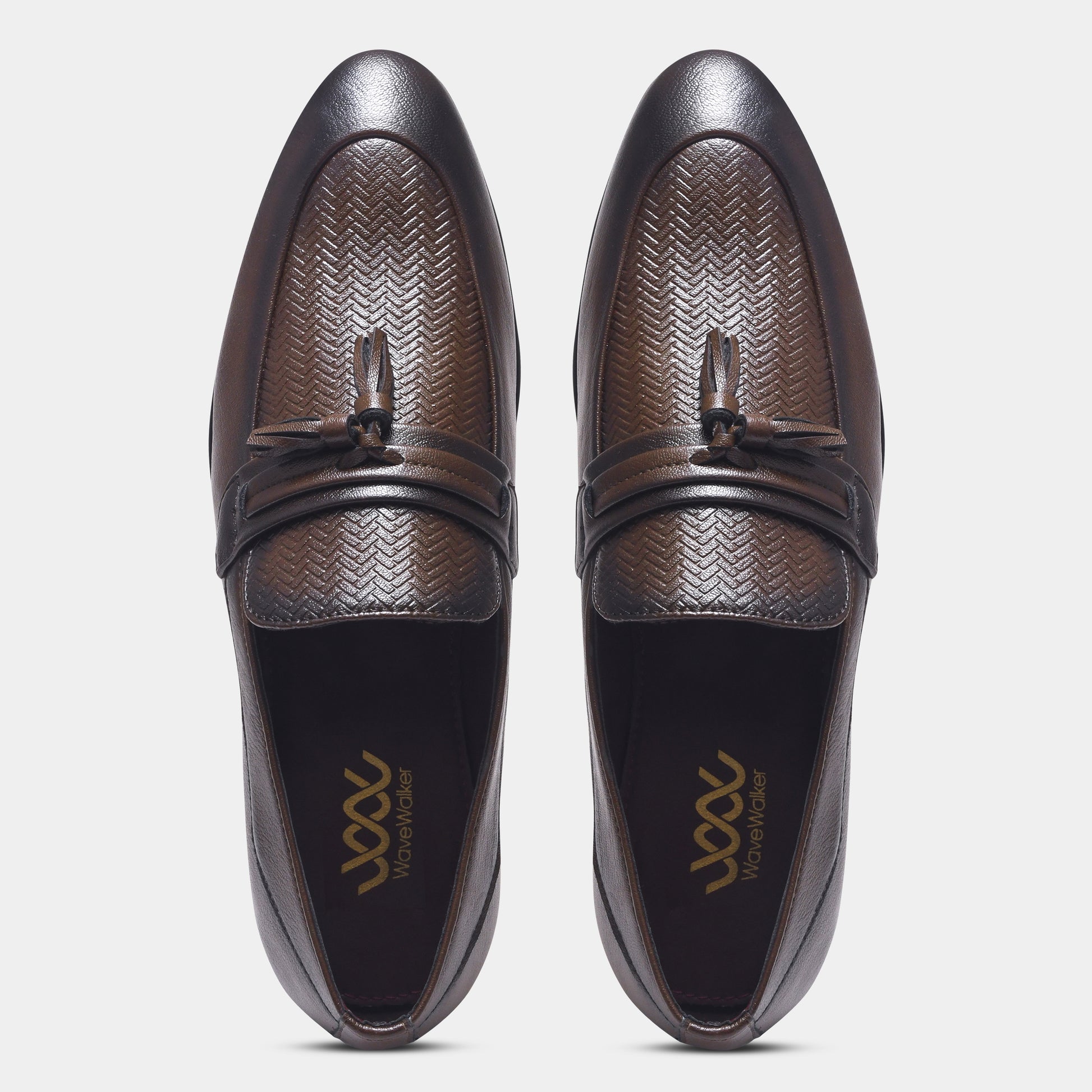 Wave Walker Blaze Handcrafted Woven Brown Penny Loafers For Men