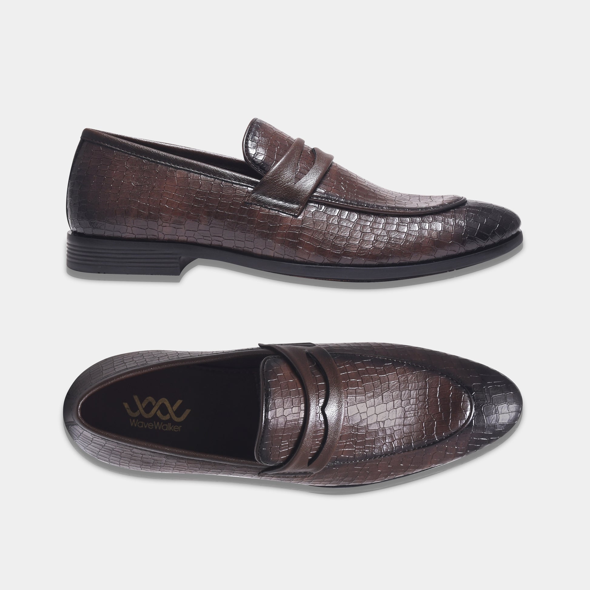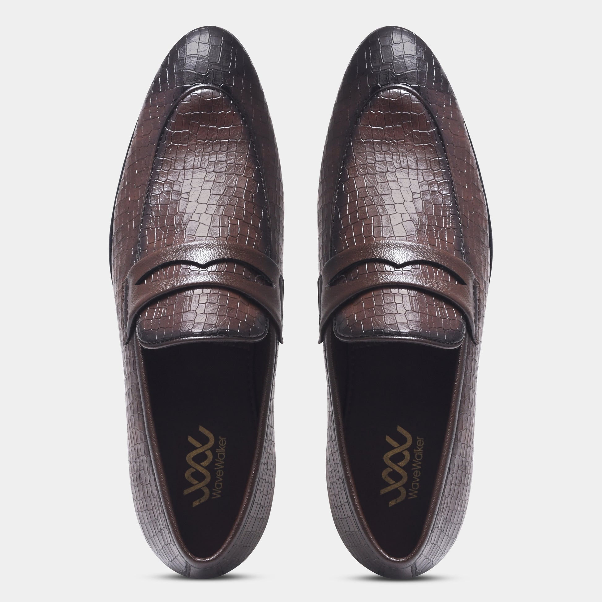 Wave Walker Blaze Handcrafted Woven Brown Penny Loafers For Men
