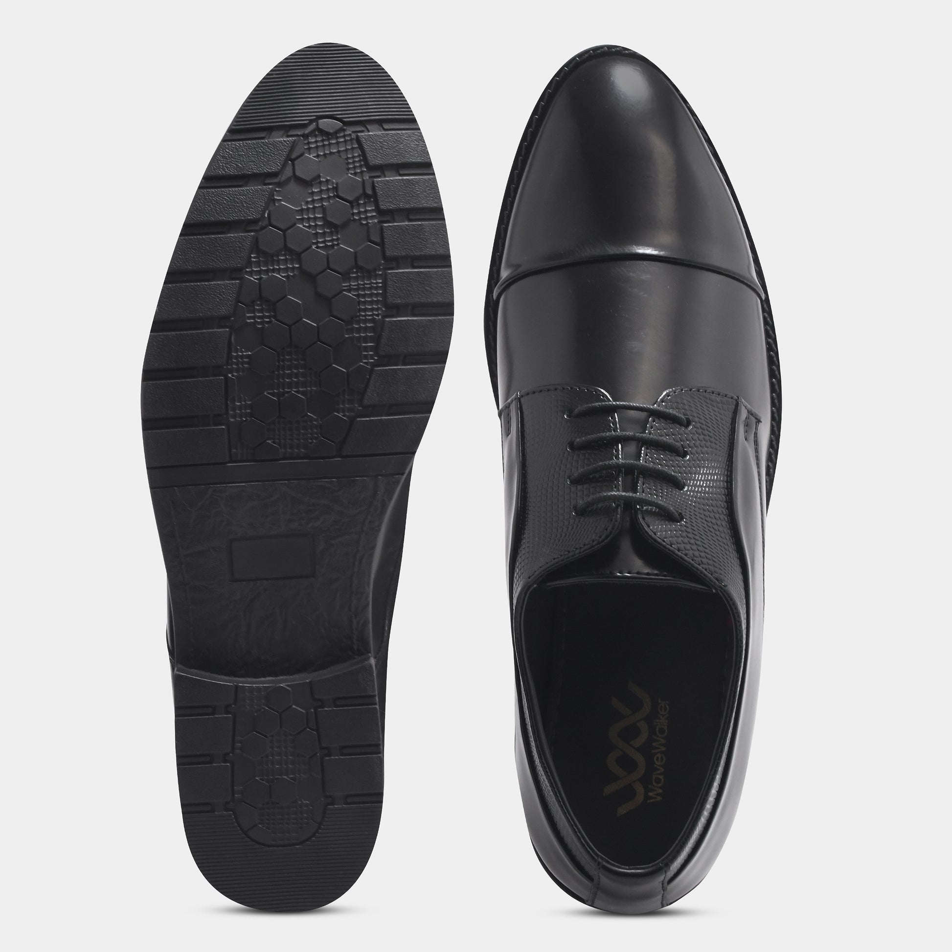 WAVEWALKER STYLE Men Faux Leather Black Oxford Lace-Ups Shoes